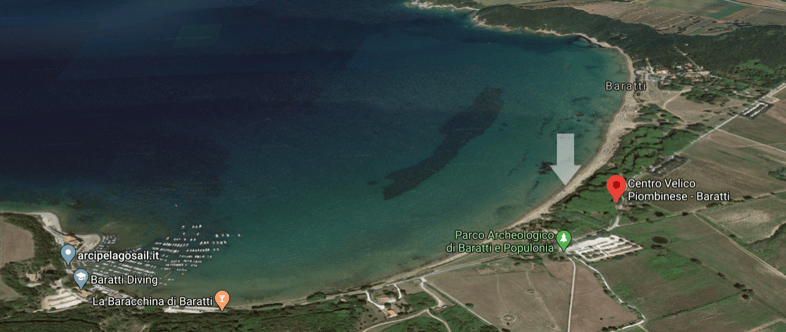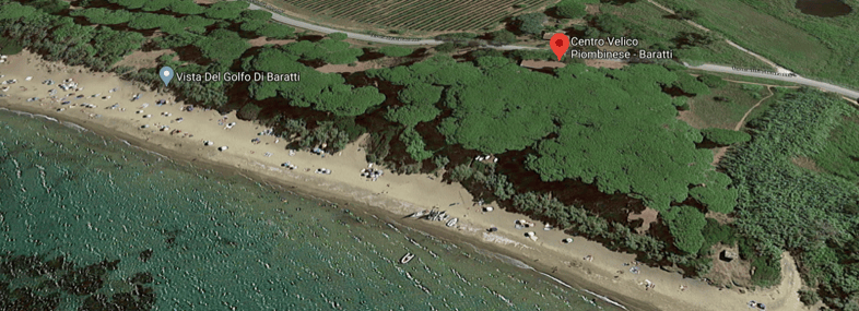 Il primo di questi appuntamenti è nel golfo di Baratti, dove il Centro Velico Piombinese ha la sua base estiva. Si trova nella splendida pineta affacciata sulla spiaggia dove dispone di un canale di lancio riservato. Il Circolo utilizza una struttura che apparteneva al Club Mediterranee e dispone di amplissimi spazi per ospitare le barche e carrelli.
